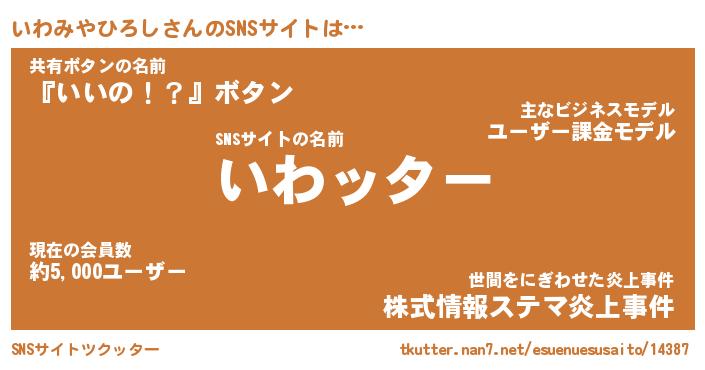 | 肩書あだ名 | 『いわみやひろしCEO』 |