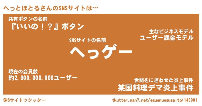 | 伝説のあだ名 | 『伝説のスナイパーへっとほとる』 |