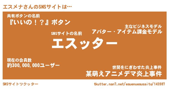 | 男性向けラノベタイトル風あだ名 | 『エスメナアートオンライン』 |
