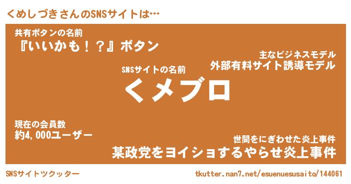 | 男性向けラノベタイトル風あだ名 | 『クメシヅキアートオンライン』 |