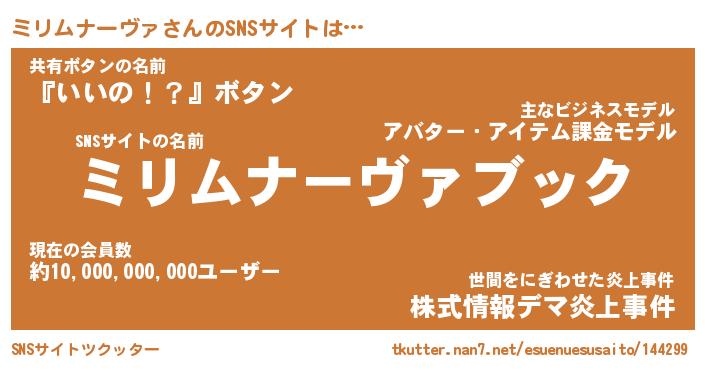 | 欧米人風あだ名 | 『マイケルミリムナーヴァ』 |