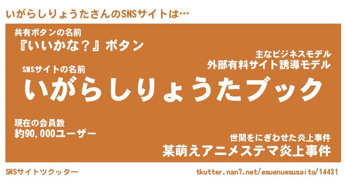 | 胡散臭い通販商品みたいなあだ名 | 『億万長者になれるブレスレット…その名も「いがらしりょうた」』 |