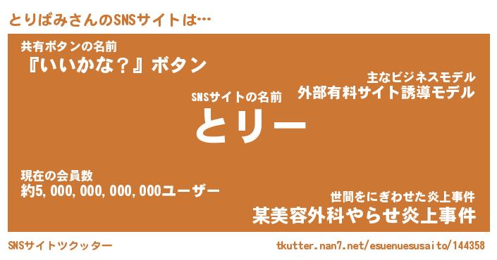 | 意味不明あだ名 | 『ペロリンとりばみ』『永久保存とりばみ』 |