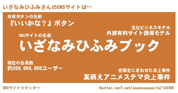 | 男性向けラノベタイトル風あだ名 | 『イザナミヒフミアートオンライン』 |