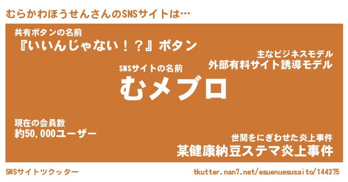 | 男性向けラノベタイトル風あだ名 | 『ムラカワホウセンアートオンライン』 |
