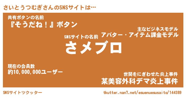 | 肩書あだ名 | 『さいとうつむぎ店長』 |