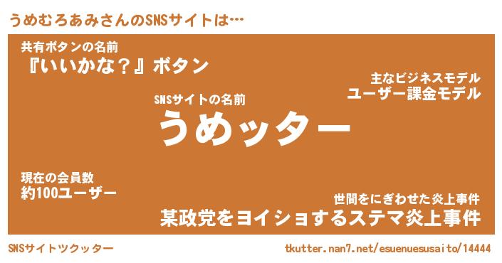 | 胡散臭い通販商品みたいなあだ名 | 『億万長者になれる霊験あらたかなお札…その名も「うめむろあみ」』 |