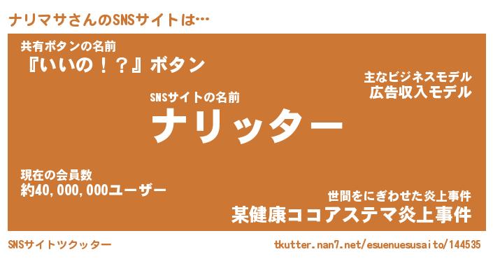 | ファンタジー風あだ名 | 『ナリフェル』『エターナルナリマサー』 |