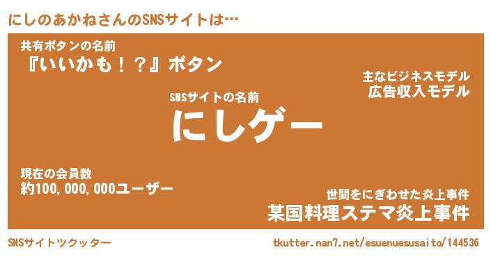| 2回繰り返すあだ名 | 『にしにし』『ににしし』『ぬらぬら』 |