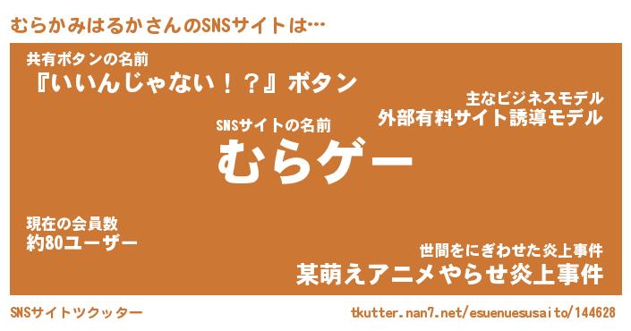 | 女子向けラノベタイトル風あだ名 | 『(仮)むらかみはるかのやんごとなき事情』 |