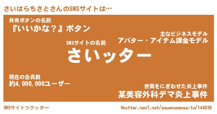 | 胡散臭い通販商品みたいなあだ名 | 『億万長者になれるブレスレット…その名も「さいはらちさと」』 |