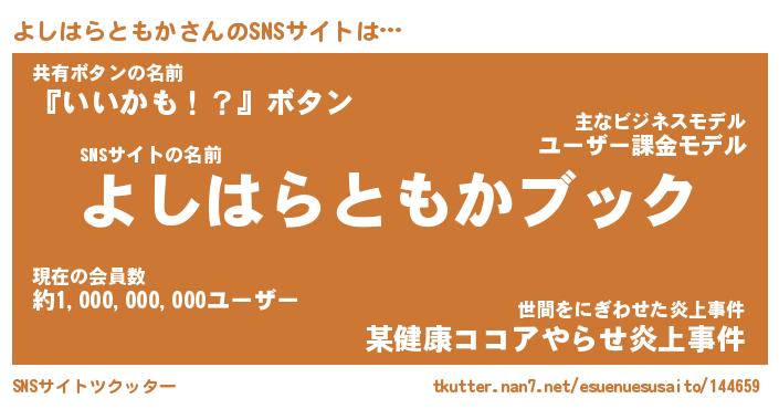 | 胡散臭い通販商品みたいなあだ名 | 『億万長者になれる水晶球…その名も「よしはらともか」』 |