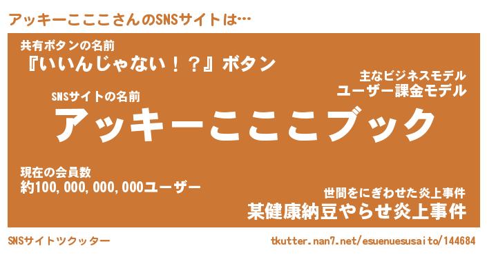 | 男性向けラノベタイトル風あだ名 | 『アッキーコココアートオンライン』 |