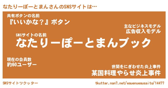 | 肩書あだ名 | 『なたりーぽーとまん社長』 |