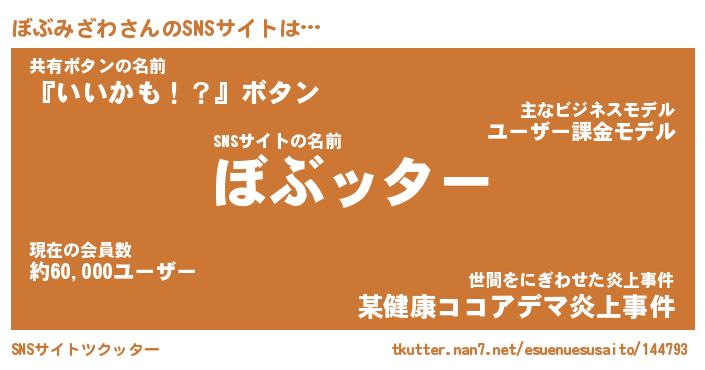 肩書あだ名 | 『ぼぶみざわ御曹司』『ぼぶみざわ大統領』 |