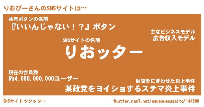 | 胡散臭い通販商品みたいなあだ名 | 『億万長者になれる霊験あらたかなお札…その名も「りおぴー」』 |