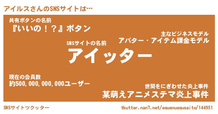 | 胡散臭い通販商品みたいなあだ名 | 『億万長者になれるブレスレット…その名も「アイルス」』 |