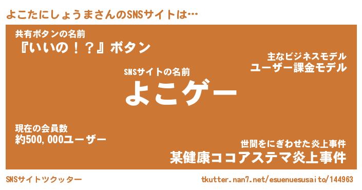 | ツイッター | よこたにしょうまさんのツイッターID『kikurage_kun』 |