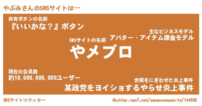 | 肩書あだ名 | 『やぶみCEO』『やぶみ大統領』 |