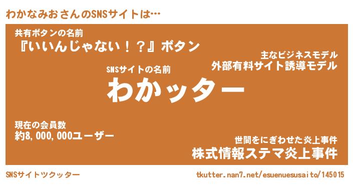 | ツイッター | わかなみおさんのツイッターID『fukuyoka_man』 |