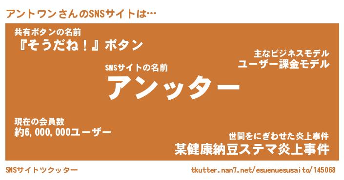 | 胡散臭い通販商品みたいなあだ名 | 『億万長者になれるブレスレット…その名も「アントワン」』 |