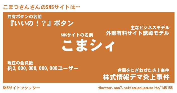 | 肩書あだ名 | 『こまつさんCEO』『こまつさん国家主席』 |