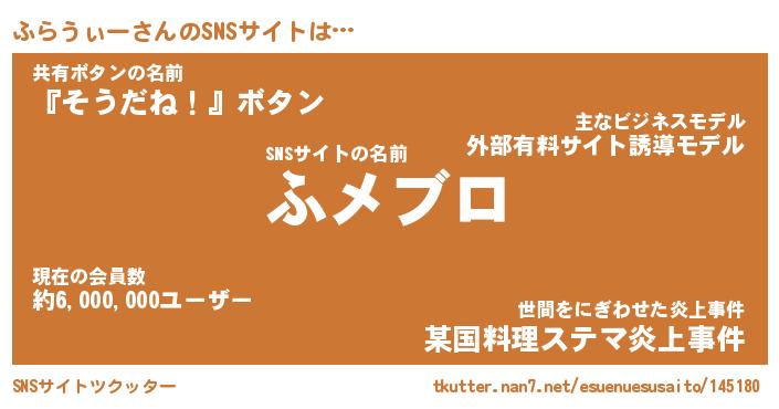 | ヘコむあだ名 | 『ふらっふぃ~』『豆乳』『ふらお』 |