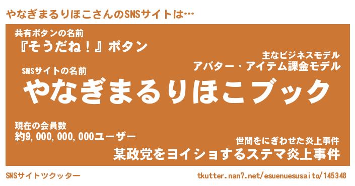 | 肩書あだ名 | 『やなぎまるりほこCEO』 |