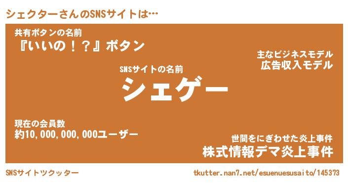 | ヒーロー風カッコイイあだ名 | 『スーパーシェクター』『黄金騎士シェ』 |