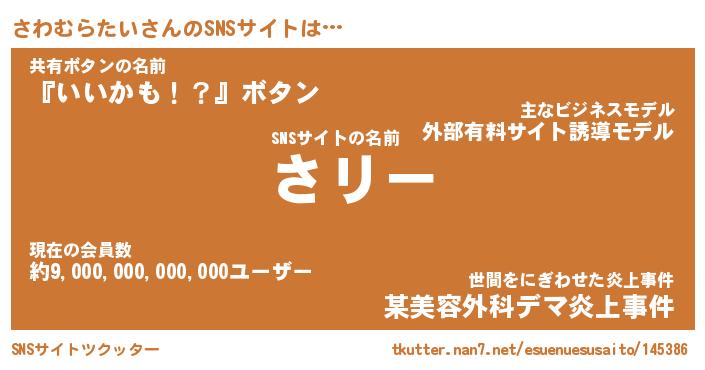 | 肩書あだ名 | 『さわむらたい店長』『さわむらたい先生』 |