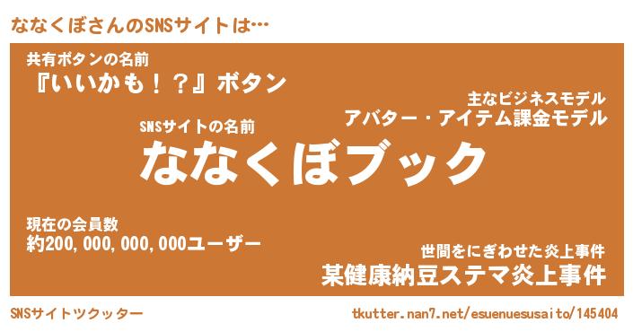 | 欧米人風あだ名 | 『マイケルななくぼ』『ウサインななくぼ』 |
