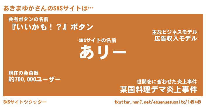 | ファンタジー風あだ名 | 『アキフェル』『エターナルアキマユカー』 |