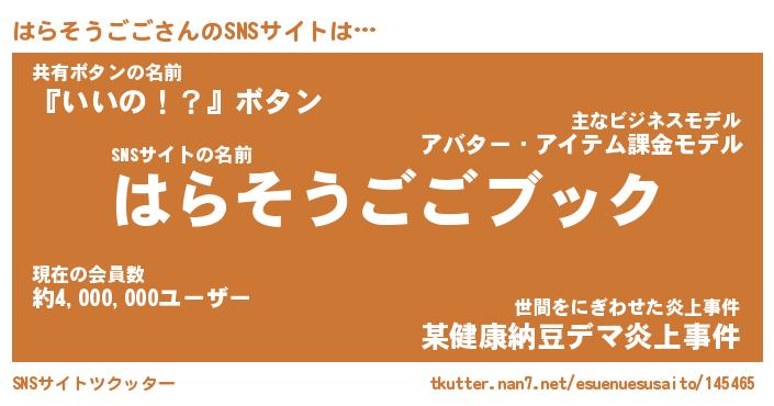 | ツイッター | はらそうごごさんのツイッターID『dendenmushi_idle』 |