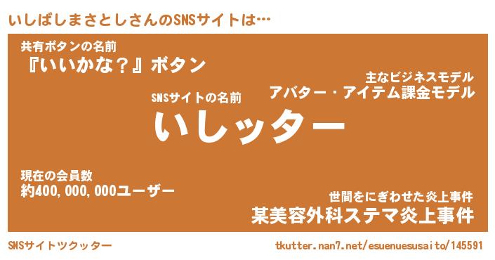 | 男性向けラノベタイトル風あだ名 | 『イシバシマサトシアートオンライン』 |