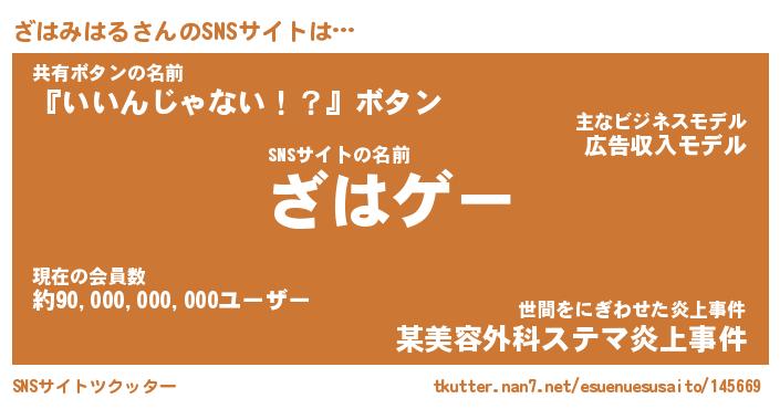 | 伝説のあだ名 | 『伝説のスナイパーざはみはる』 |