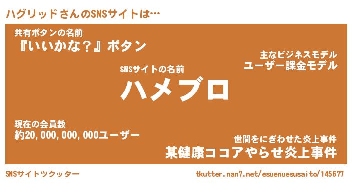 | 男性向けラノベタイトル風あだ名 | 『ハグリッドアートオンライン』 |