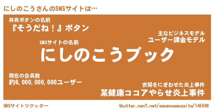 | 肩書あだ名 | 『にしのこうCEO』『にしのこう国家主席』 |