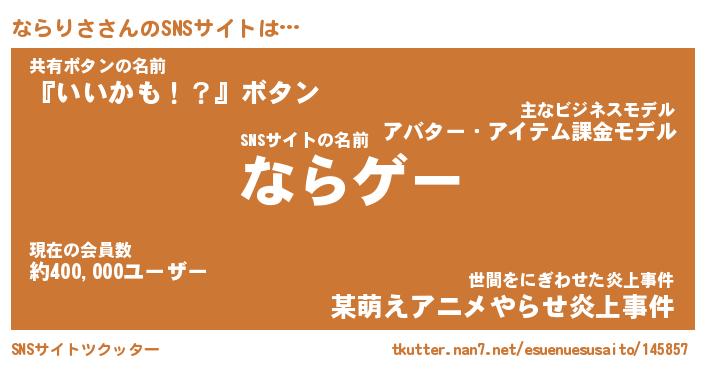 | 意味不明あだ名 | 『ペロリンならりさ』『永久保存ならりさ』 |