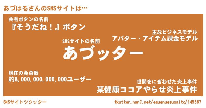 | ツイッター | あづはるさんのツイッターID『fukuyoka_nyan』 |