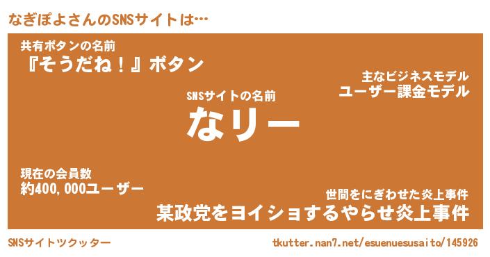 | 肩書あだ名 | 『なぎぽよ御曹司』『なぎぽよ大統領』 |