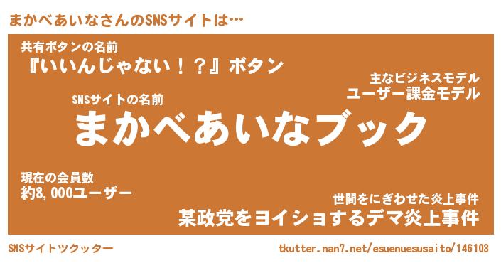 | 胡散臭い通販商品みたいなあだ名 | 『億万長者になれるブレスレット…その名も「まかべあいな」』 |
