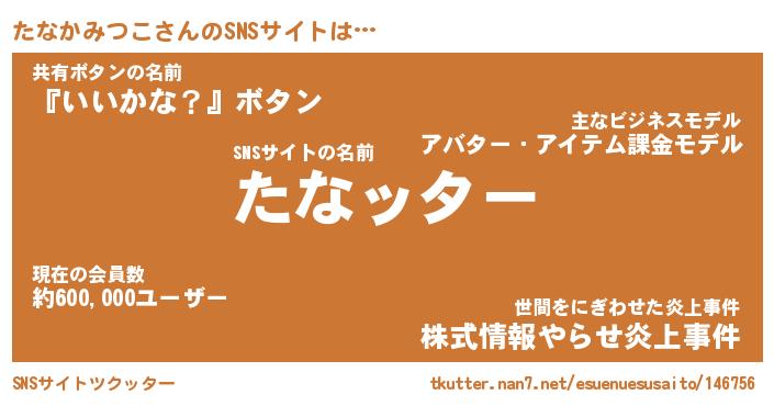 | 肩書あだ名 | 『たなかみつこCEO』『たなかみつこ班長』 |