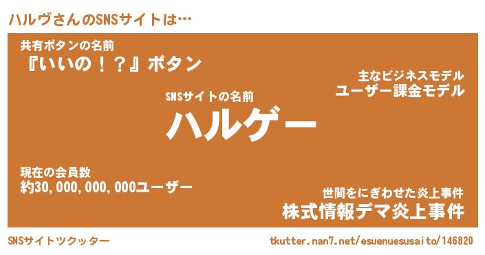 | ファンタジー風あだ名 | 『ハルフェル』『エターナルハルヴー』 |