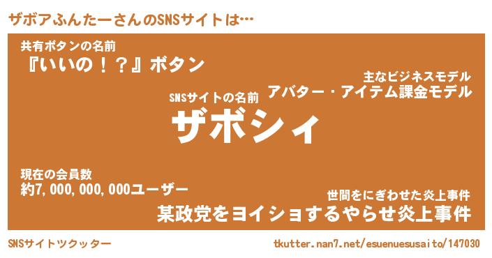 | 男性向けラノベタイトル風あだ名 | 『ザボアふんたーの憂鬱』 |