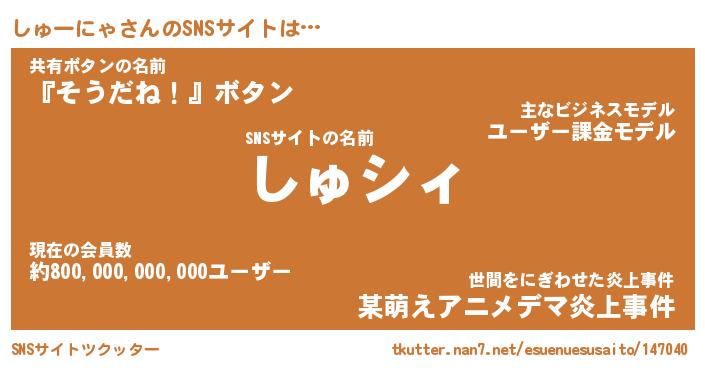 | 男性向けラノベタイトル風あだ名 | 『しゅーにゃの憂鬱』 |