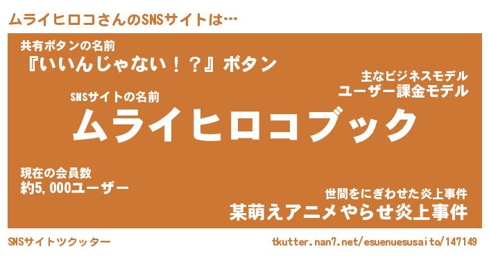 | 男性向けラノベタイトル風あだ名 | 『ムライヒロコアートオンライン』 |