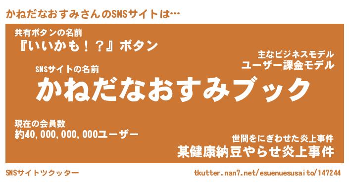 | 胡散臭い通販商品みたいなあだ名 | 『億万長者になれる霊験あらたかなお札…その名も「かねだなおすみ」』 |