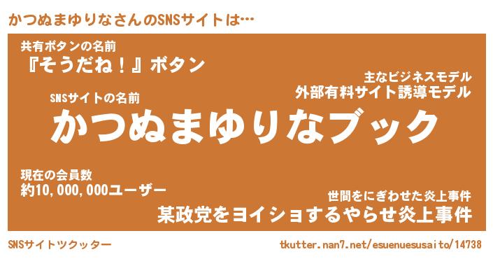 | 胡散臭い通販商品みたいなあだ名 | 『億万長者になれる水晶球…その名も「かつぬまゆりな」』 |