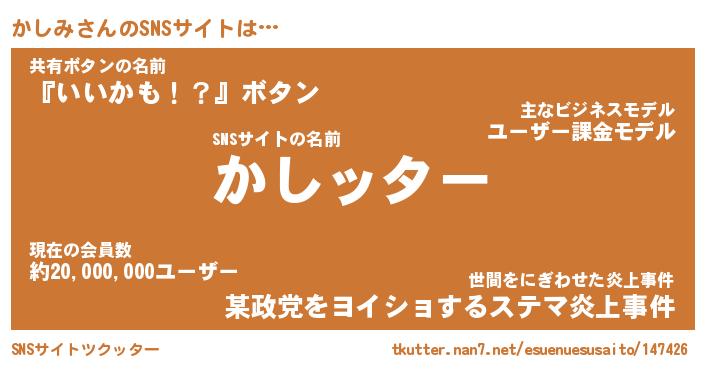 | 肩書あだ名 | 『かしみ店長』『かしみ国家主席』 |