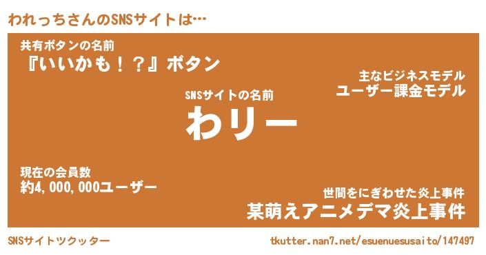 | ファンタジー風あだ名 | 『ワレフェル』『エターナルワレッチー』 |
